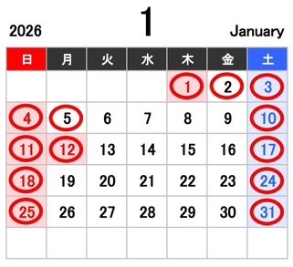 2025年12月27日(土) ~ 2026年1月5日(月) 休 業