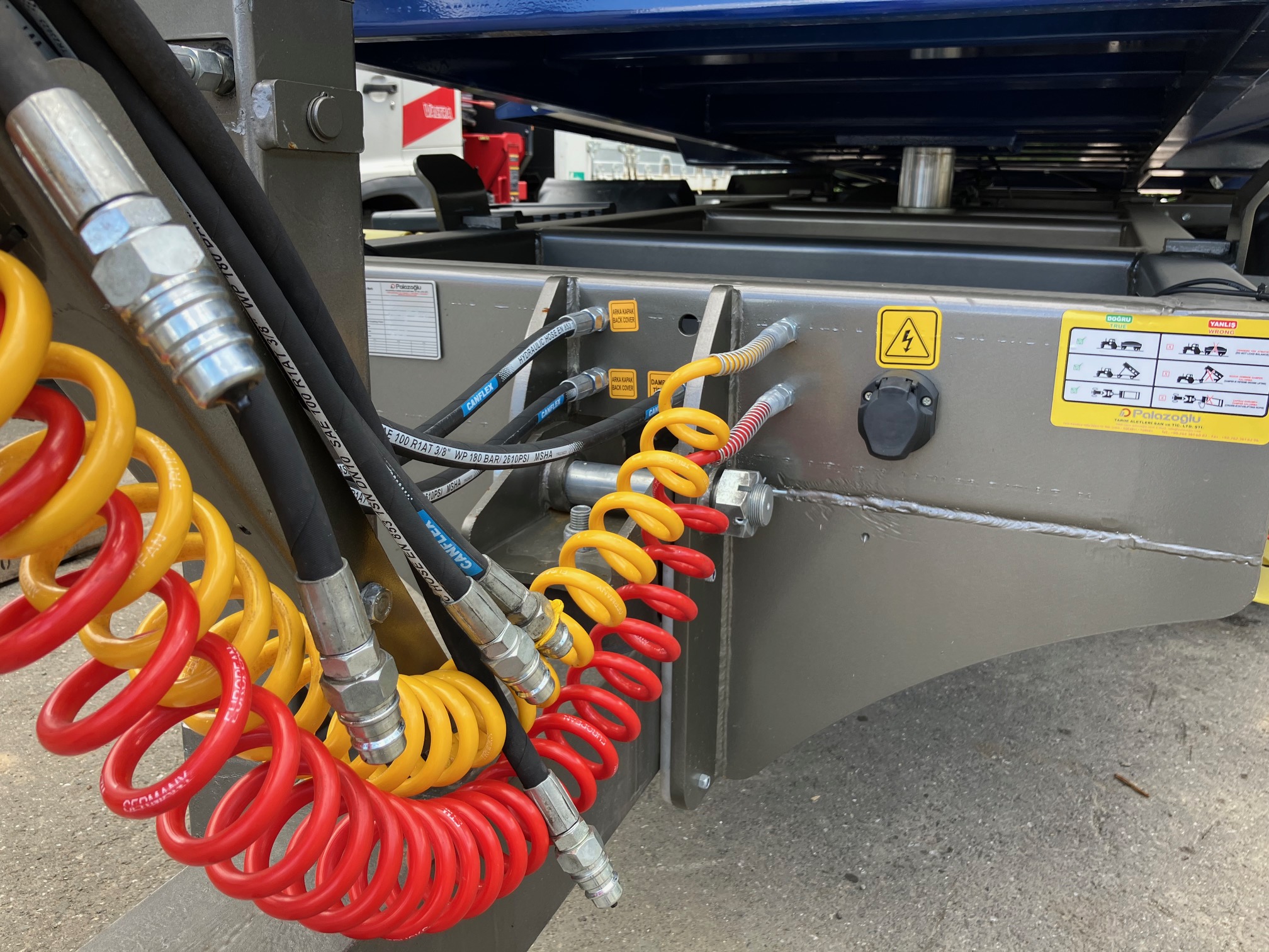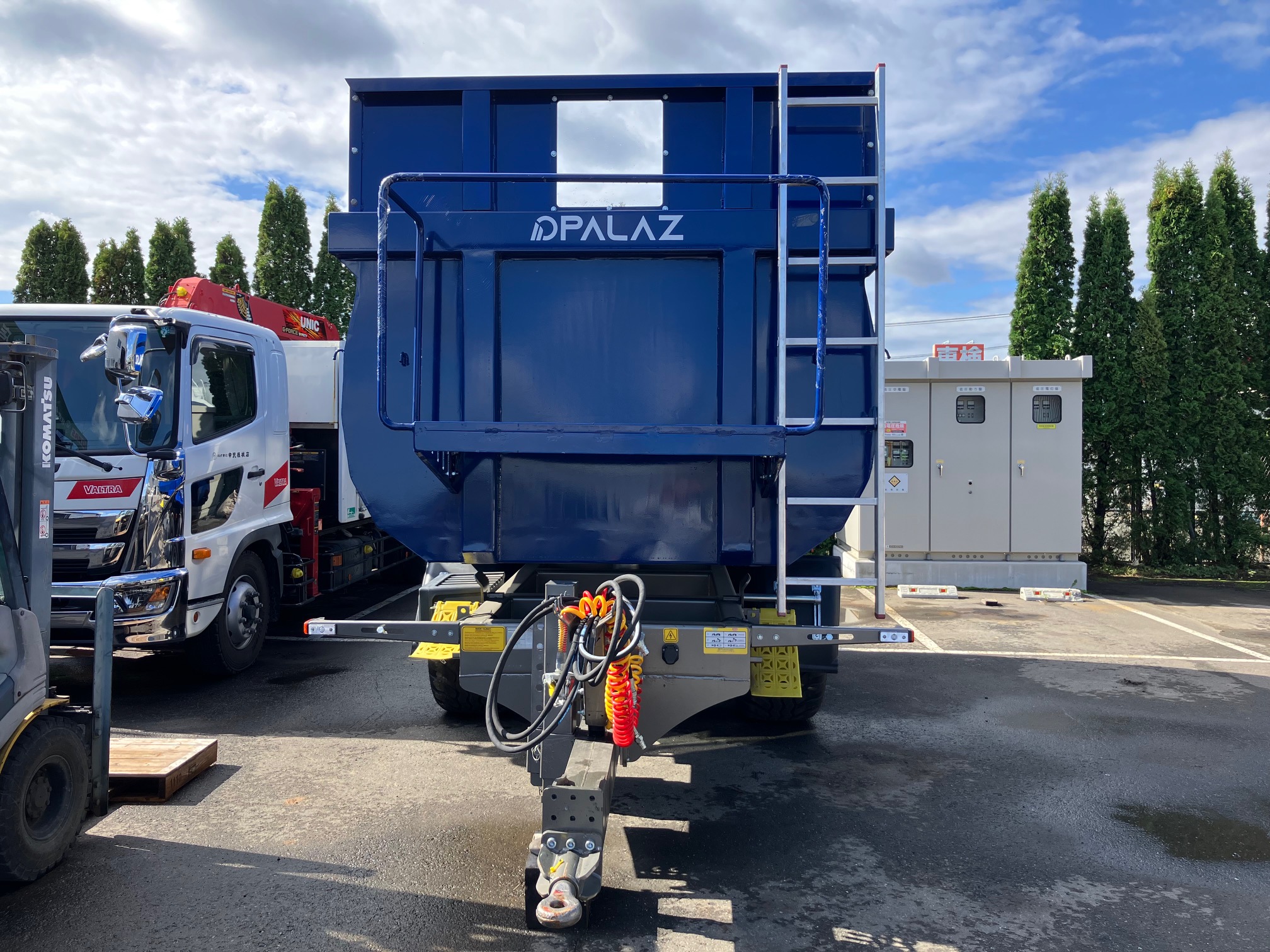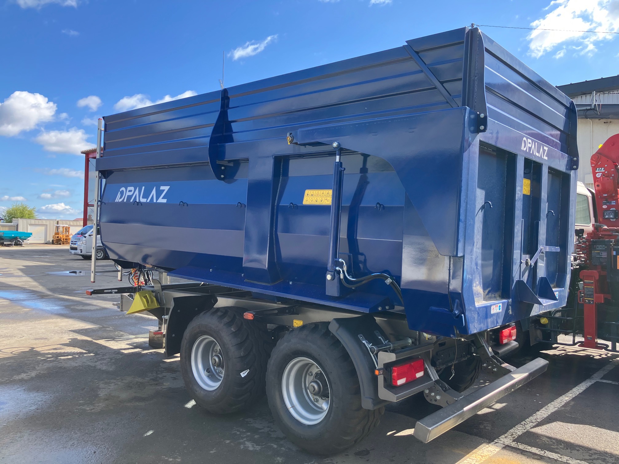 ・積載内寸(長さ×幅×高さ):4.5m×2.07m×1.7m ・エアーブレーキ with ALB ・油圧リヤゲート ・ドローバーサスペンション ・けん引部高さ油圧調整 ・オペレータープラットフォーム ・手動パーキングブレーキ ・LED STOPライト ・ポジションライト